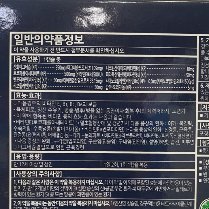 - 이 약에 함유된 비타민 등의 효능 효과는 다음과 같다
