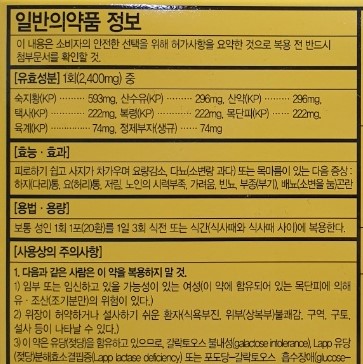 보통 성인 1회 1포를 1일 3회 식전 또는 식간에 복용한다