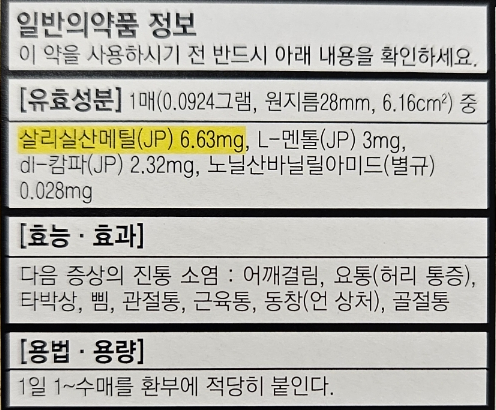 근육통 관절통에 붙이는 동전 파스